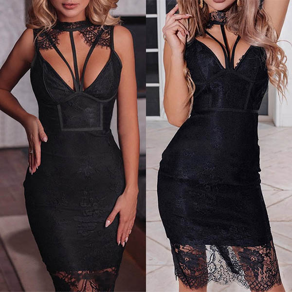 Sexy Hollow Out Lace Spliced Sleeveless Slim Fit Dress
