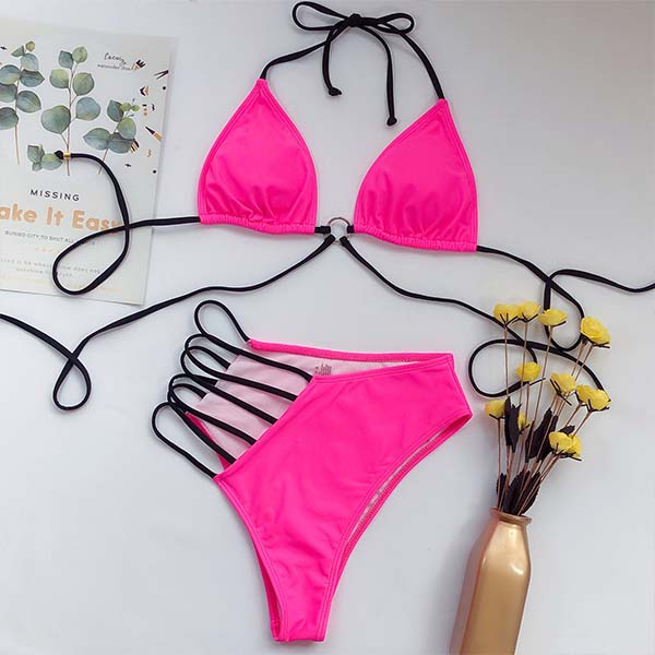 Sexigt Hollow Out Halter Bikini Set med snörning