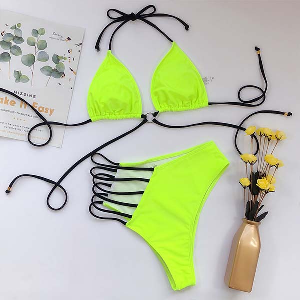 Du skulle vara den vackraste och mest lockande bikinitjejen när du går på stranden med detta bikiniset. De ihåliga detaljerna och snörningsdesignen gör den full av sexiga och flirtiga vibbar. Du kan lita på att det här bikinisetet ger dig en underbar och minnesvärd tid.