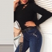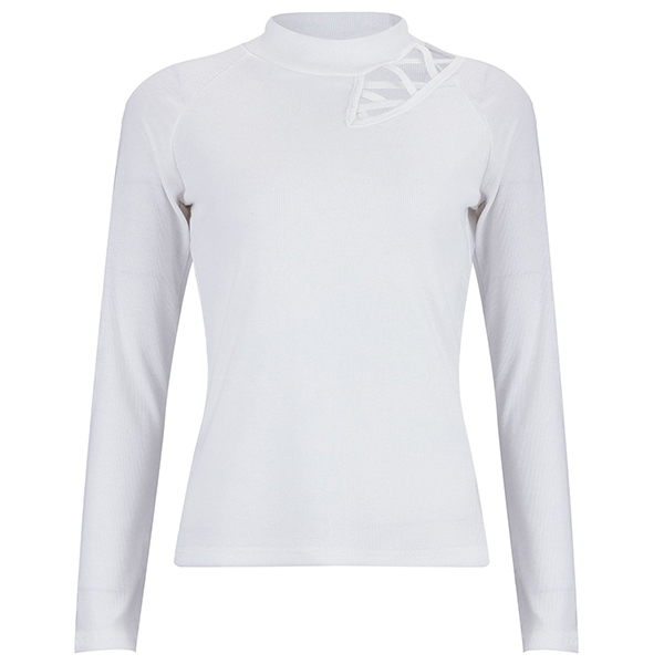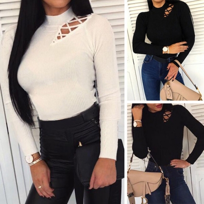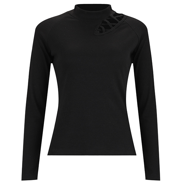 Sexy Hollow Out Long Sleeve Mock Neck Slim Fit Top