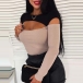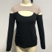 Sexy Hollow Out Long Sleeve Round Neck Contrast Color T-shirt