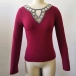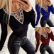 Sexy Hollow Out Long Sleeve Round Neck Rhinestone Spliced T-shirt