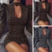 Sexy Hollow Out Puff Sleeve Leopard Spliced Slim Fit Dress