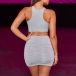 Sexy Hollow Out Sleeveless Crop Top + Skirt Two-piece Set