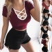 When you wanna flaunt off your slender waist,you can just slip into this crop top. The hollow out U-neck design can make you look sexier. Finished with short sleeve and hooded design,this piece can offer you a flirty look by teaming with a high waist shorts or pants.