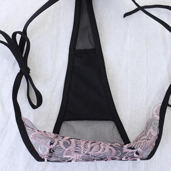 Sexiga Transparenta Mesh-trosor med Spetsbroderi och Snörning