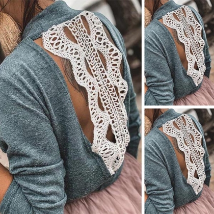 You may not find its sexy and unique design details at your first sight. So we suggest you a second glance. The backless and lace spliced design at the back side can lend you a dash of sexy and feminine appeal. Finished with long sleeve and mock design,this piece knows how to give you a cozy yet stylish style.