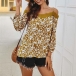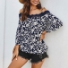 Sexy Lace Spliced Boat Neck 3/4 Sleeve Printed Sling Top