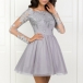 Sexy Lace Spliced Boat Neck Long Sleeve High Waist Party Dress