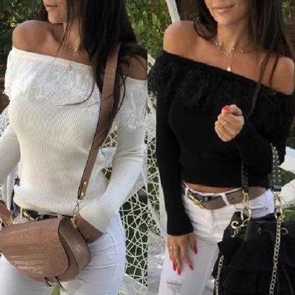 In these early autumn days,this knit top can be your good choice. It comes with a solid color,the lace spliced boat neck design can lend you a dash of sexy and feminine vibes. You can match it with any kind of bottoms you like to achieve for a charming look.