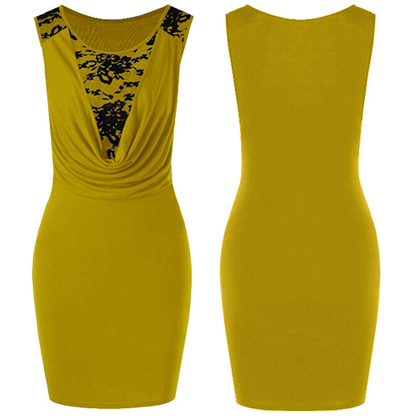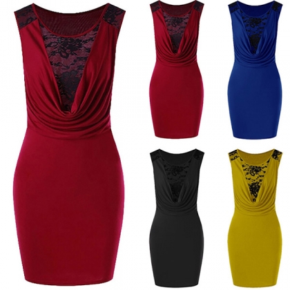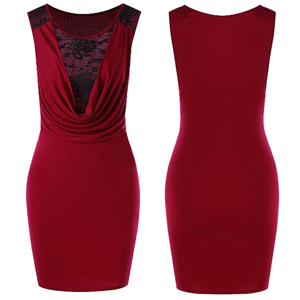 Save this delicate and elegant dress for your dinner dates and weekend gatherings. The lace spliced cowl neck design are the highlight,which makes this piece look so distinctive and attractive,while the fit silhouette design can portray your slender figure. Dress it up with your sexy heels and elegant clutch,you can look stunning enough!