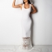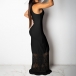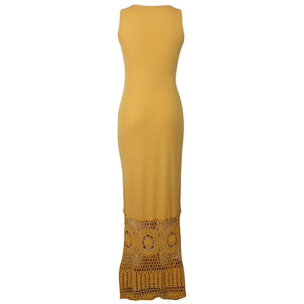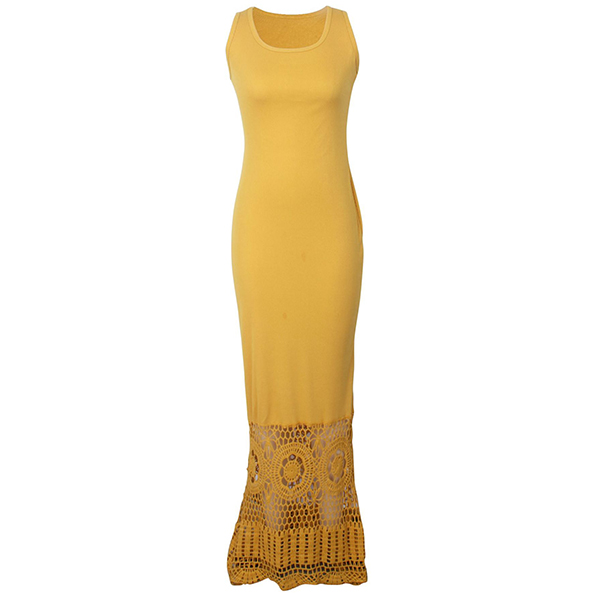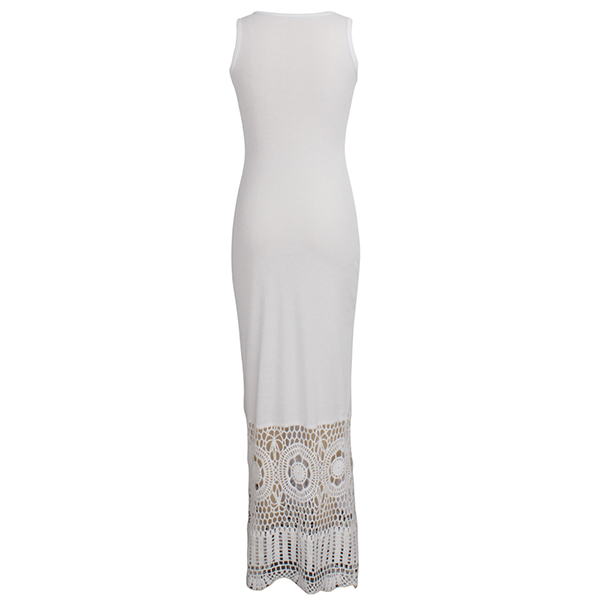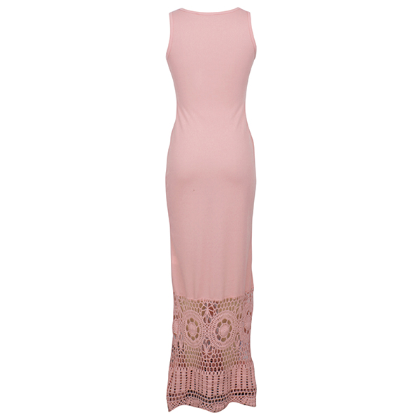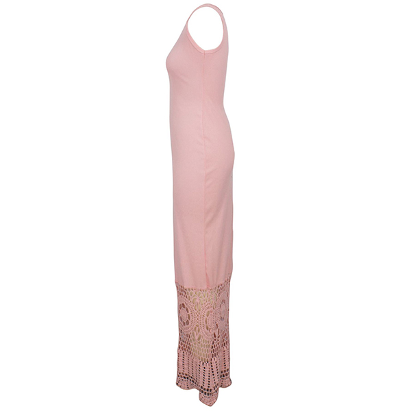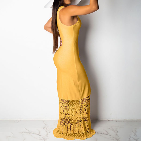 Sexy Lace Spliced Hem Sleeveless Round Neck Floor-length Dress