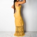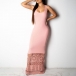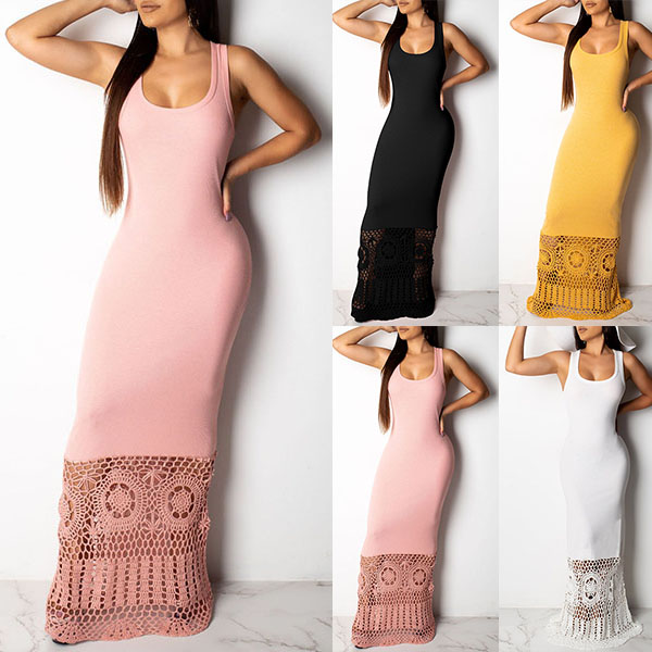 You deserve to win more eyes when you wear this floor-length dress. Finished with sleeveless,round neck and a fit silhouette,this dress can portray your perfect figure,while the hollow out lace spliced hem design will further enhance its charm. For your fancy events,this little stunner can be your perfect partner.