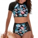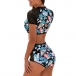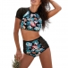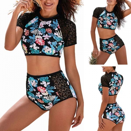 Sexy Lace Spliced High Waist Short Sleeve Printed Bikini Set