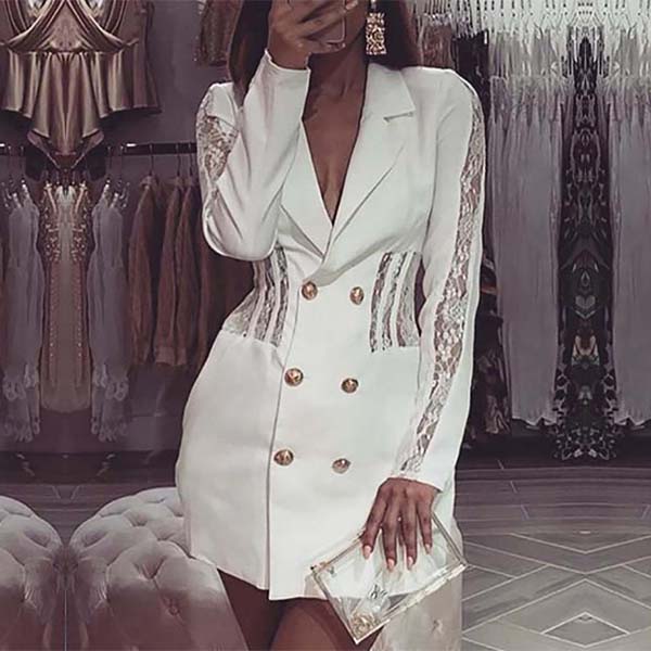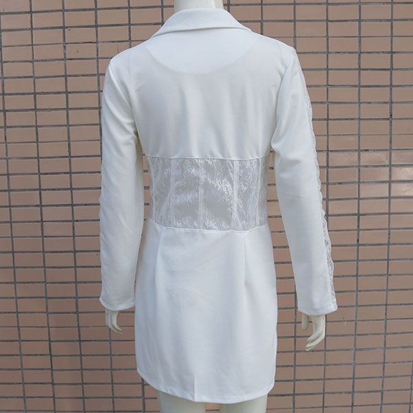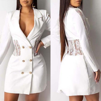 Sexy Lace Spliced Long Sleeve Double-breasted Slim Fit Blazer