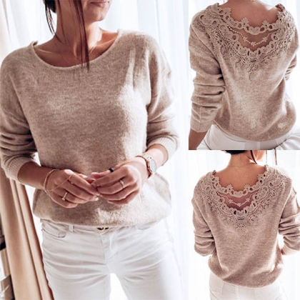 For these breezy autumn days,this knit top can be a good choice. What makes this piece look so attractive? It owes to the lace spliced details. Al-match design allows to be matched with different style bottoms. Try to match with your favourite bottom to finish a stylish autumn look.