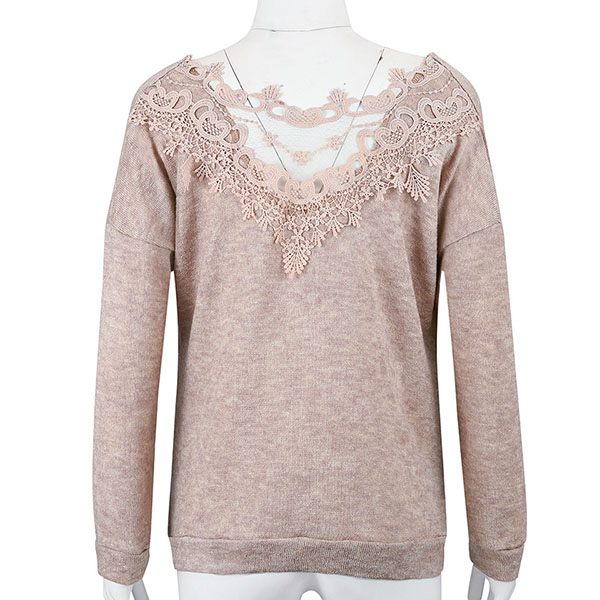 Sexy Lace Spliced Long Sleeve Round Neck Knit Top