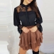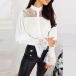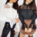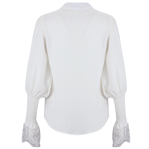 Sexy Lace Spliced Long Sleeve Stand Collar Shirt