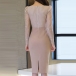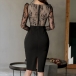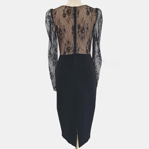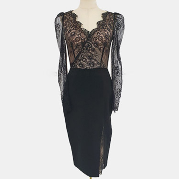 Sexy Lace Spliced Long Sleeve V-neck Slim Fit Dress