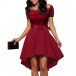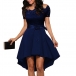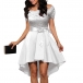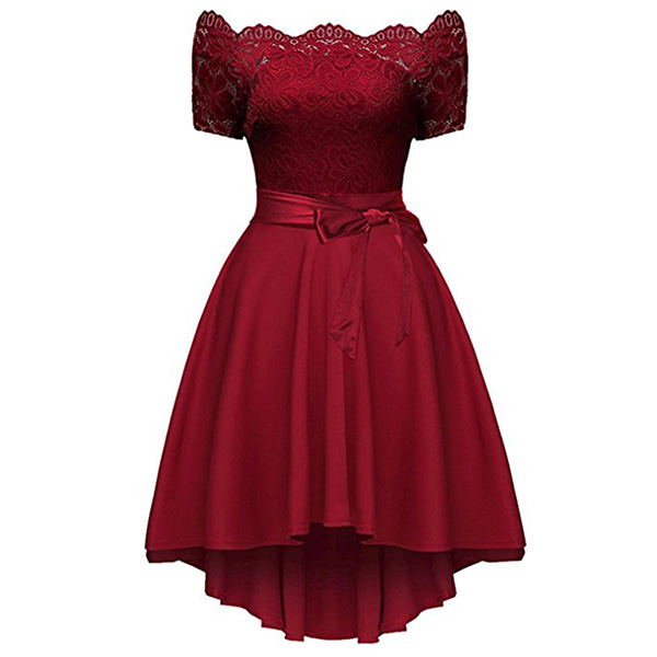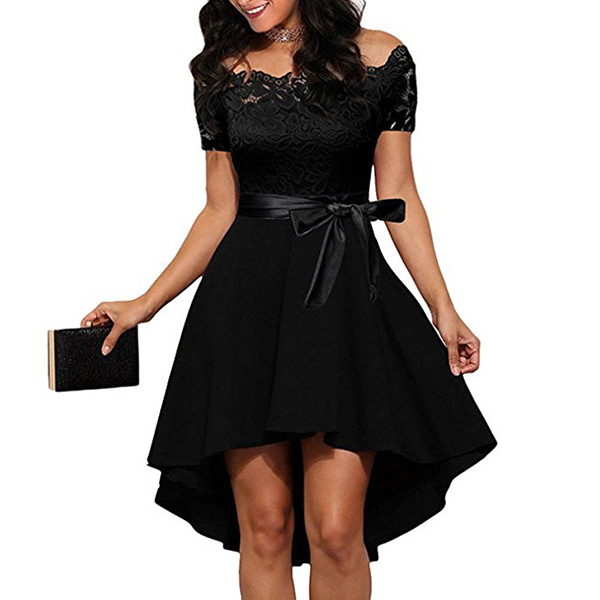 Sexy Lace Spliced Short Sleeve Boat Neck High-low Hem Dress