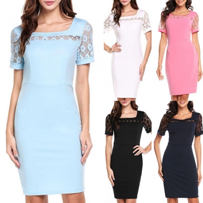 Hey,girls,you need such a delicate and stylish dress to take you to different occasions. The lace spliced details and square collar design can exude your feminine side,while the fit silhouette design can portray your slender figure. Just slip into this piece to portray your elegant and charming image.