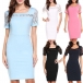Sexy Lace Spliced Short Sleeve Square Collar Slim Fit Dress