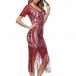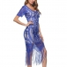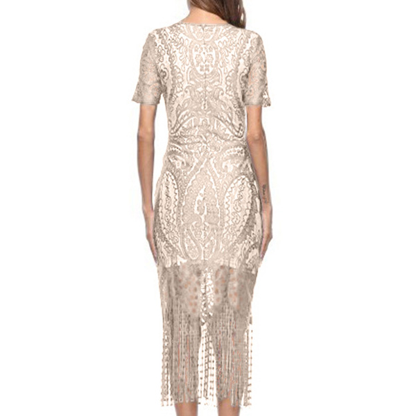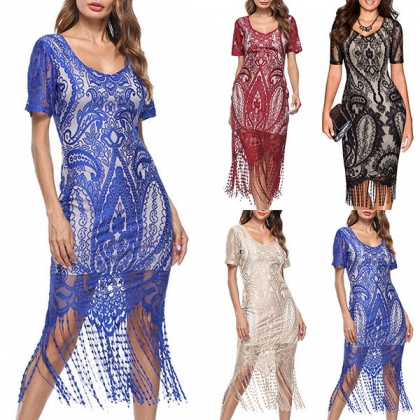 A sexy and charming dress is a quintessential must-have item for every girl. So how about this piece? It is finished with short sleeve,v-neck and a fit silhouette design,which can showcase your slender figure. Moreover,the tassel hem design will further enhance its charm. So why not save it for your parties and gatherings?