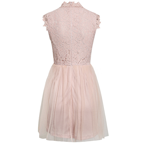 Don't know what to wear for your dinner dates and weekend gatherings? Then might we suggest you this piece? The lace spliced details can easily enhance your feminine appeal. Finished with sleeveless,mock neck and a clean,fit silhouette design,this dress knows how to express your beauty and femininity!