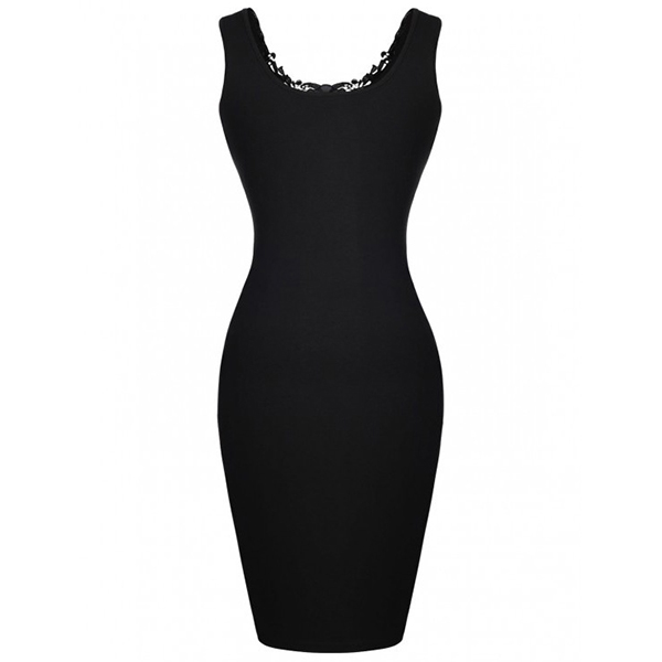 Sexy Lace Spliced Sleeveless Round Neck Slim Fit Dress