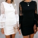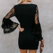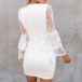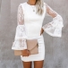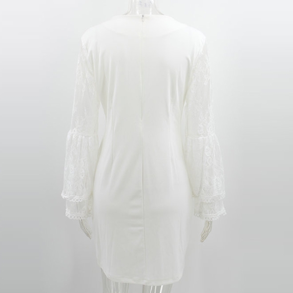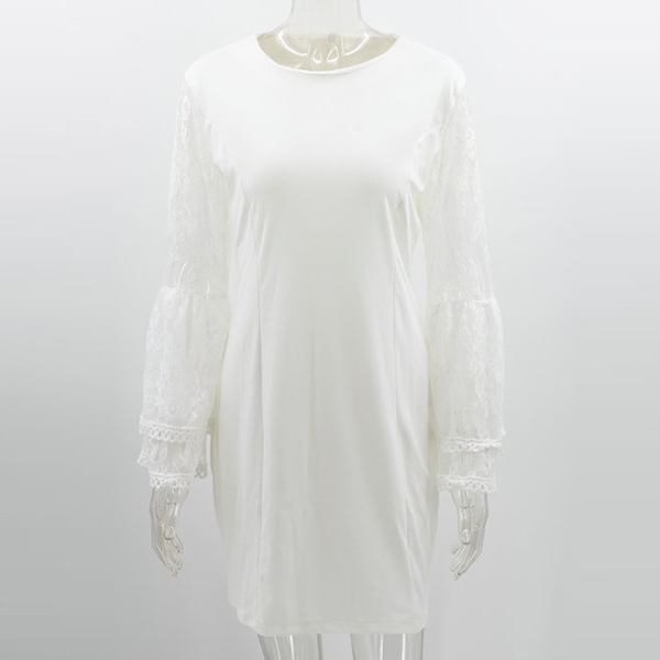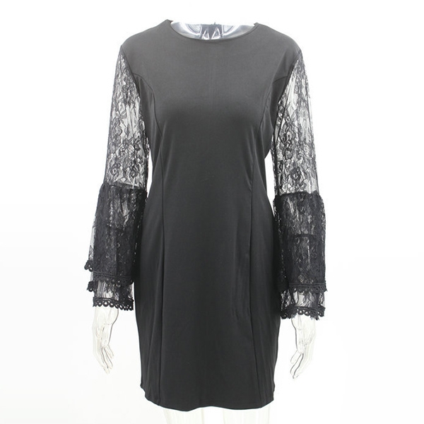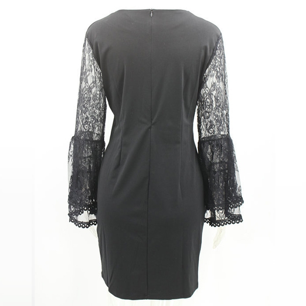 You can easily arouse a splash when you slip into this dress. The lace spliced trumpet sleeve design