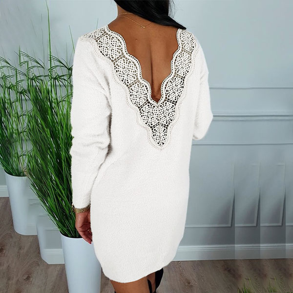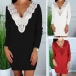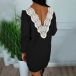 Sexy Lace Spliced V-neck Long Sleeve Dress