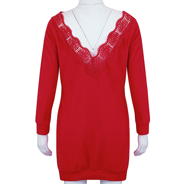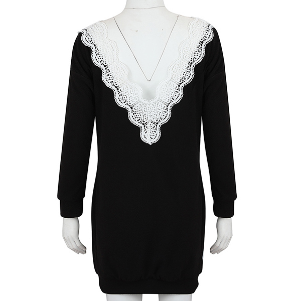 Create a sexy and sassy look with this long sleeve dress. The lace spliced v-neck design can exude your charming feminine appeal,while its soft and breathable fabric will ensure you a comfortable day. Another design highlight is that you can wear the front side as the back side. Like it? Then don't miss it!