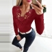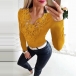 Sexy Lace Spliced V-neck Long Sleeve Slim Fit Top
