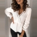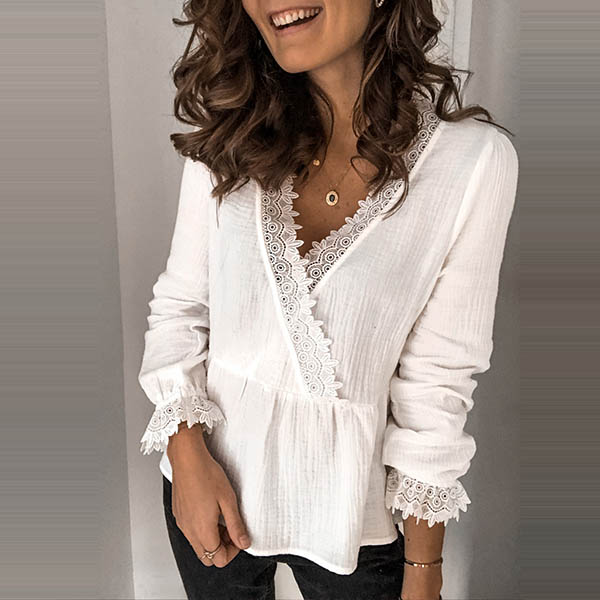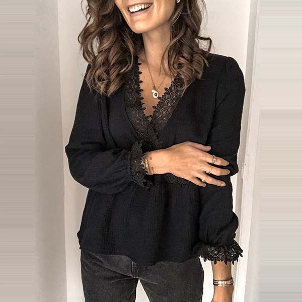Cozy and effortlessly fashionable,this wonderful top is yearning for a place in your wardrobe. Solid color style,the v-neck and lace spliced details will further enhance its charm. You can add a stunning necklace if you wanna look more beautiful.