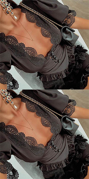 You can easily gain more compliments when you are out and about with this dress. Its alluring design details like deep v-neck,ruffle and lace spliced details can offer you a sexy and flirty look. Pairing with your sexy heels,you can look beautiful and stunning enough!