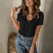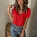 Sexy Lace Spliced V-neck Short Sleeve Solid Color T-shirt