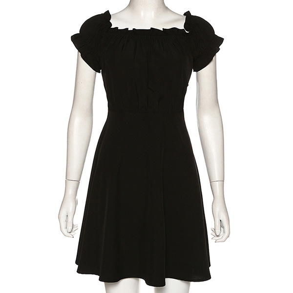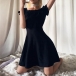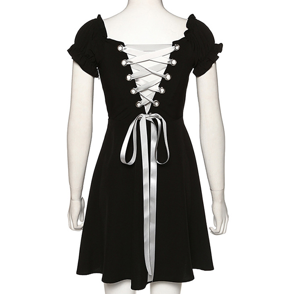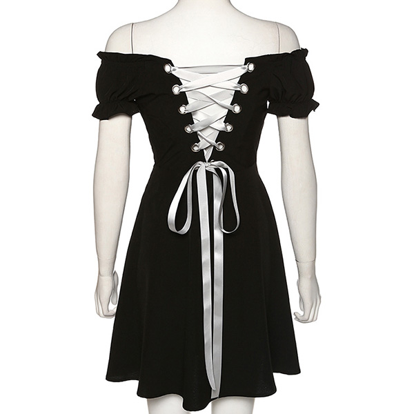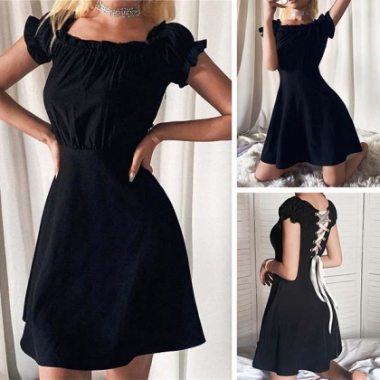 Sexy Lace-up Backless Short Sleeve Boat Neck Solid Color Dress
