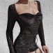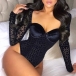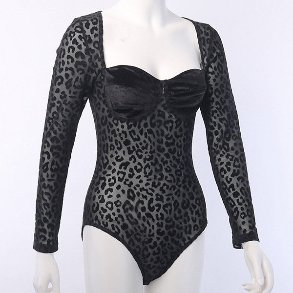 Sexy Leopard Gauze Spliced Long Sleeve Square Collar Bodysuit