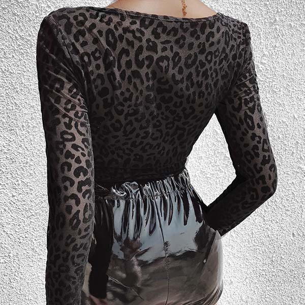 All the eyes can be focused on you once you wear this bodysuit. The leopard printed details and see-through gauze spliced design make this piece look so sexy and alluring. Your seductive curve can have a full display in this little stunner. We suggest you matching with a high waist bottom to have a flirty style.