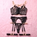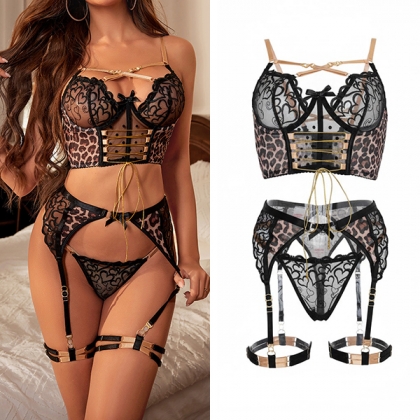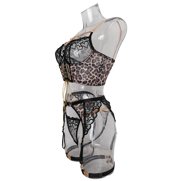 Sexigt leopardmönstrat 3-delat underklädesset med korssnörning och spets