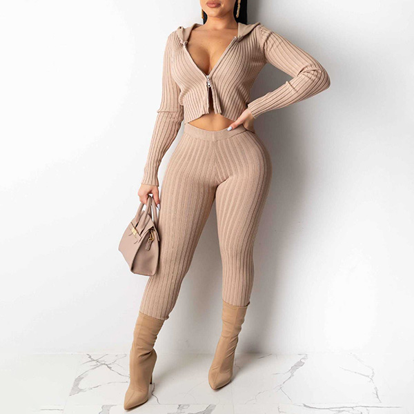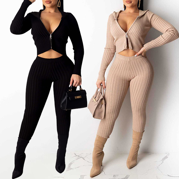 For a sexy and charming weekend look,you can have a try this two-piece set. Solid color style,including a long sleeve hooded crop top and a pair of pants,this two-piece set can showcase your perfect figure. When you wanna boost your charm and update your style,you can have a try this two-piece set.