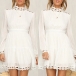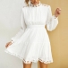 Sexy Long Sleeve Mock Neck High Waist Solid Color Hollow Out Dress