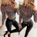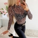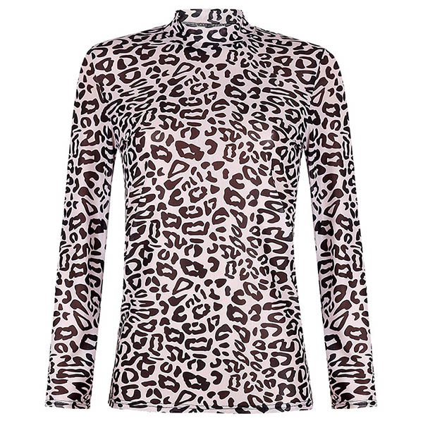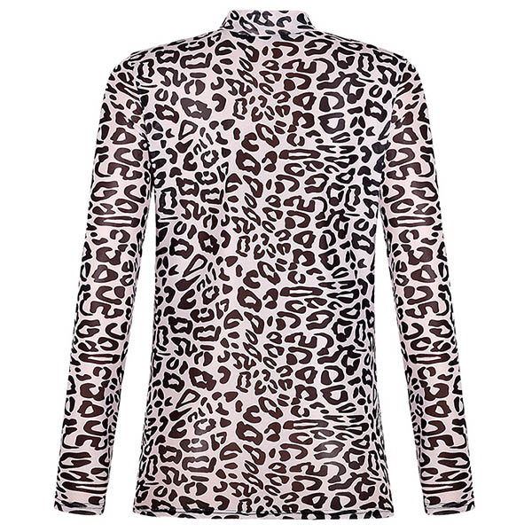 Sexy Long Sleeve Mock Neck Leopard Printed Slim Fit T-shirt