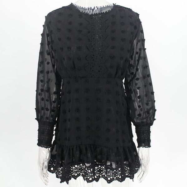 Sexy Long Sleeve Round Neck High Waist Lace Spliced Dress
