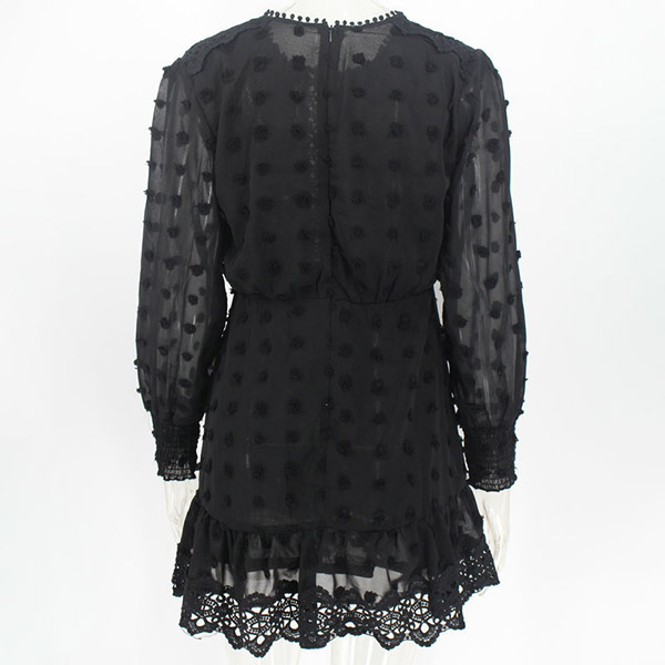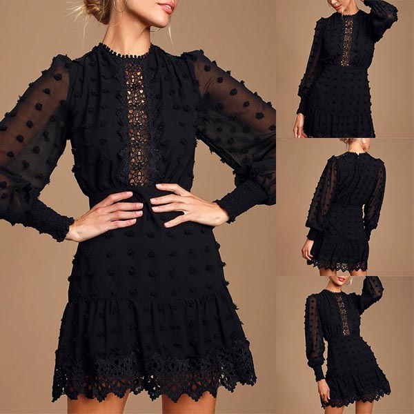 You can easily achieve for a sassy and beautiful dating look when you dress yourself up with this little black dress. The gauze and lace spliced details make this piece look so sexy and flirty,while the high waist design can showcase your slender figure. Dress it up with your sexy heels,you can look beautiful enough!