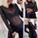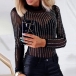 Sexy Long Sleeve Round Neck Rhinestone Spliced See-through Top