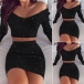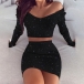 This flattering two-piece set that hugs you at the right places will certainly gain more compliments when you're out and about. It consists of a long sleeve v-neck crop top and a high waist skirt,this two-piece set definitely can express your beauty and femininity while it flaunts off your perfect figure.