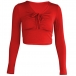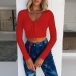 Sexy Long Sleeve V-neck Solid Color Crop Top