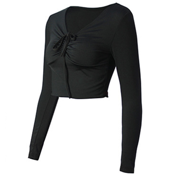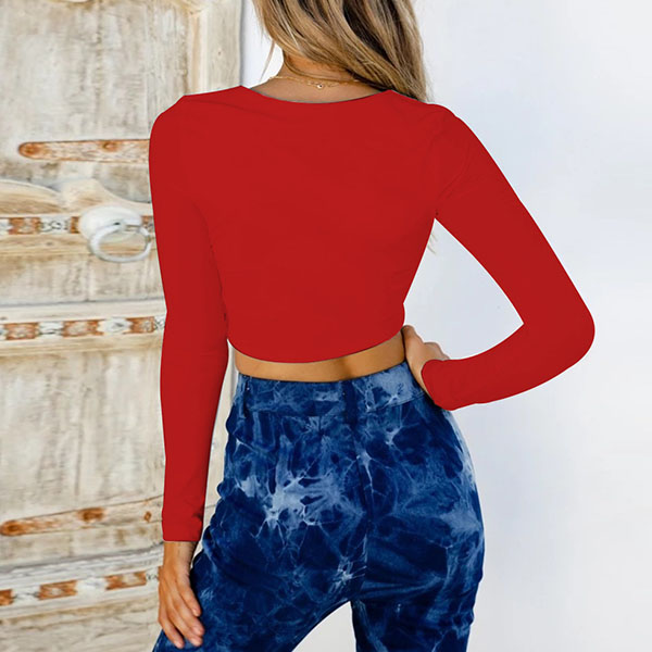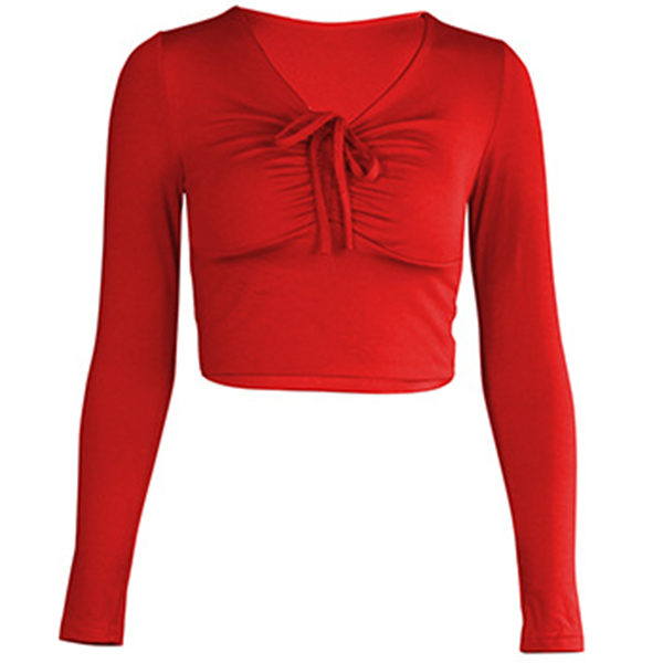 Crop top is a good way to showcase your slender waist. So if you wanna flaunt off it,then choose this crop top. It comes with a solid color,finished with long sleeve,v-neck and lace-up design,this piece would offer you a sexy and charming look by teaming with your high waist bottoms.