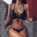 Summer season is a good time for you to head to the seaside to relax yourself. So how could you miss this cozy yet sexy bikini set? Including a low-waist bikini bottom and a halter bikini top,the lace-up design makes it look more alluring. You can easily showcase your sexy and seductive curve through this bikini set!